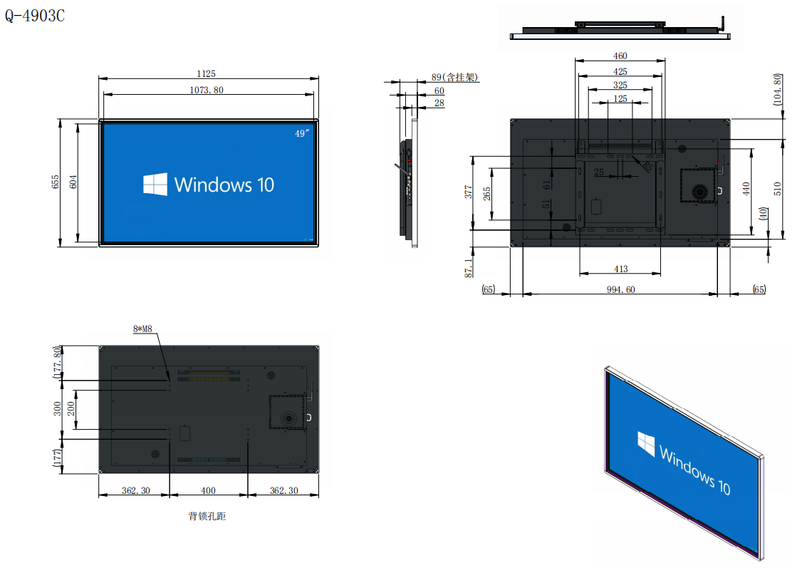 外觀尺寸 | 749×444×82mm(長*高*厚含掛架) | 992×580×89mm(長*高*厚含掛架) | 1125×655×89mm(長*高*厚含掛架) | 1260×731×89mm(長*高*厚含掛架) | 1479×854×89mm(長*高*厚含掛架) |
