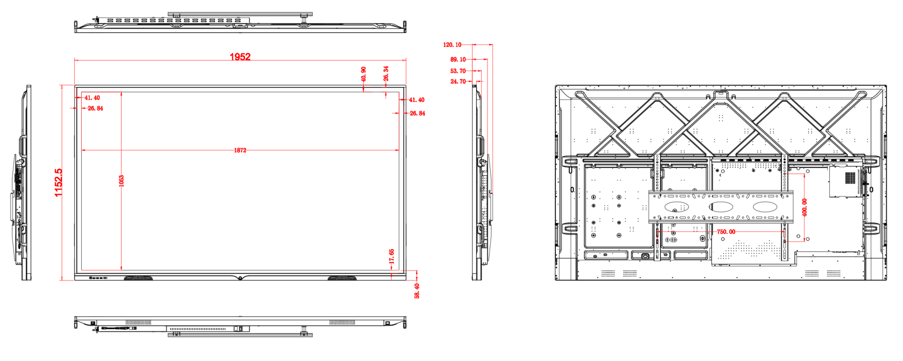 含掛架尺寸 | 1257.7*745.2*103.5MM | 1483.6*889.6*119.9MM | 1705.8*1013.5*120.1MM | 1952*1152.5*120.1MM | |
